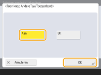 U kunt de taal en toetsenbordindeling op het aanraakscherm wijzigen. Als u vaak tussen talen schakelt, is de <Andere Taal/Toetsenbord>-knop handig. Volg onderstaande procedure om deze knop op het aanraakscherm weer te geven.