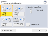![]() | U kunt enkelzijdige documenten afdrukken op beide zijden van het papier. U kunt ook een dubbelzijdig document op beide zijden van het papier kopiëren, of op twee afzonderlijke pagina's. 1-Zijdig kopiëren naar 2-zijdig 2-Zijdig kopiëren naar 2-zijdig 2-Zijdig kopiëren naar 1-zijdig |