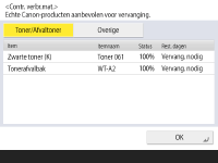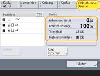 Controleer de gedetailleerde status van verbruiksmaterialen.
