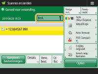Geef de bestemming op het scherm met basisfuncties voor scannen op.