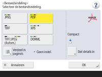 Als u <PDF>, <XPS> of <OOXML> selecteert, kunt u verschillende aanvullende instellingen opgeven.