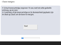 Meng de toner voor de eerste aanpassing. ![]() ![]() Druk op <Start> om de toner te mengen. Als het scherm verschijnt met een melding dat het proces voltooid is, druk dan op <OK>. | |