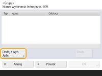 Jeżeli chcesz wybrać odbiorcę zarejestrowanego pod przyciskiem wybierania jednoprzyciskowego, naciśnij po kolei <Dodaj z Wyb. Jedn.>