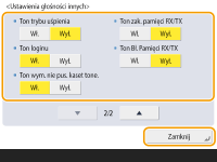 Ustaw dźwięki dla potwierdzenie/ostrzeżenia i naciśnij na <Zamknij>.