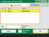 Opcje <Zarej.nowych odbiorców>, <Szczegóły/Edytuj>, Usuń i <Zapisz/Edytuj> na ekranie <Książka adresowa (Lokalnie)> mogą służyć do rejestrowania nowych odbiorców, sprawdzania szczegółów oraz edytowania/usuwania odbiorców. Aby korzystać ze Zdalnej książki adresowej, konieczne jest skonfigurowanie ustawień serwera. Zaprogramować zewnętrzny sposób otwierania Zdalnej książki adresowej na serwerze. |