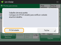 Se enviar um I-fax para um destino que não suporta o modo de transmissão, o ecrã <Contr. estado> apresentará <A aguard.resul...>, mesmo que o envio seja concluído. Esta mensagem é apresentada até ao fim do período de tempo definido em <Intervalo TR. Modo completo>.