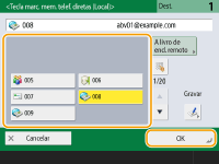 Ecrã de funções básicas de leituraEspecificar destinos do livro de endereços