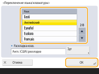 . Можно поменять текущий язык на другой, нажав кнопку <Перекл. языка/клавиатуры>, выбрав нужный язык из списка и нажав кнопку <OK>.