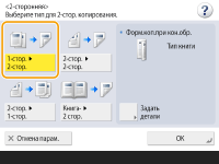 В режиме <Книга 2 стороны> можно использовать только бумагу формата A4.При использовании режима <Книга 2 стороны> устанавливайте оригиналы на стекло экспонирования. |