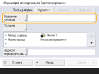 При выборе <Переадресация без условий> можно переадресовать все полученные документы, не соответствующие указанным критериям, выбранному адресату. Можно выполнить переадресацию нескольким адресатам, указав группового адресата в <Адресат переадресации>. <Ук. время переадр.> позволяет указывать время и день для выполнения переадресации. Чтобы по окончании отправки документов пользователю отправлялось уведомление по электронной почте, включите параметр <Увед. о вып. переадрес.>. Можно выбрать <Увед.только при ош.>, чтобы не получать уведомления об успешной переадресации. Если для параметра <Сохр./Печ. принятый файл> установить <Вкл.>, вы сможете хранить и печатать принимаемый файл в соответствии с параметрами блокировки памяти. Принятый файл хранится, если для блокировки памяти установлено <Вкл.>, и печатается, если для блокировки памяти установлено <Выкл.>. |