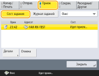 Нажмите <Детали> <Отправить повторно> для выполнения повторной отправки документов, которые не удалось отправить. Чтобы указать другого адресата, нажмите кнопку <Изменить адресата>. Если имеются документы с несколькими адресатами, для указания которых использовался один и тот же способ отправки, нажмите кнопку <Спис.шир. передачи>, выберите адресата, а затем нажмите кнопку <Отправить повторно> или <Изменить адресата>.Если для параметра <Удал. неудавшихся заданий на передачу> задано значение <Выкл.> (<Удал. неудавшихся заданий на передачу>), документы можно отправить повторно. Обратите внимание, что документы, отправленные с помощью функций прямой передачи, отправки вручную или функции факсимильной связи через ПК, не удастся отправить повторно. Для документов, отправка которых запланирована на определенное время, а также для документов, отправить которые не удалось, можно изменить адресатов. Обратите внимание, что невозможно изменить адресатов для документов с несколькими адресатами в процессе отправки таких документов, а также в случае, если возможность указать нового адресата ограничена (Ограничение круга адресатов). Адресата можно изменить для задания, отмененного из-за сбоя передачи, или задания, ожидающего передачи в режиме «Передача по расписанию». Нельзя изменить несколько адресатов одновременно. Кроме того, невозможно одновременно изменить адресатов в группе. |