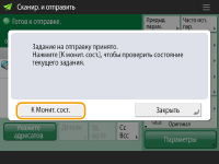 Как проверить общее количество указанных адресатовОбщее количество выбранных адресатов отображается в нижней части экрана. Это позволяет проверить количество адресатов перед отправкой. Отправка факса со сведениями об отправителеПроверка состояний отправленных документовКогда для параметра <Отображать уведомление о приеме задания> задано значение <Вкл.>, экран <Монитор сост.> может появиться на следующем экране, который отображается после получения отправленного задания. <Отображать уведомление о приеме задания>Печать отчета с результатами отправкиЧтобы задать это для каждого задания из <Параметры>, необходимо выбрать <Только при ошибке> или <Выкл.> в <Отчет о результате TX>, а затем установить для <Разрешить печать с экрана Параметры> значение <Вкл.>. Безопасная отправка файлов |