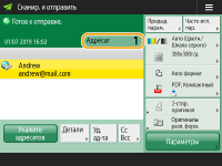 Экран основных функций сканированияУказание адресатов из адресной книги