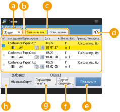 <Параметры печати>/<Парам.печ. для выбр. заданий>Можно изменить параметры печати, такие как количество копий. Также можно изменить параметры печати, если выбрано сразу несколько документов.