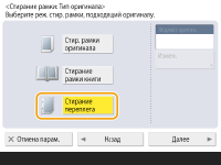 1 | Нажмите кнопку <Стирание переплета> и выберите расположение отверстия перфорации. ![]() |