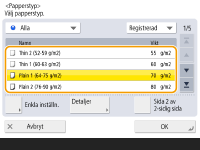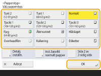 <OK>. Registrera ofta använda pappersformat och typer för universalfacket