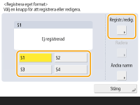 Välj en knapp från <S1> till <S4> och tryck på <Registrera/redigera>.