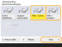 Tryck på <Häfta + Sortera> eller <Häfta + Gruppera>