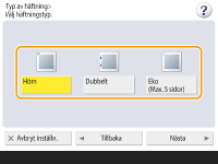För att häfta på två platser längs sidans kant, välj <Dubbelt> som häftningsposition.