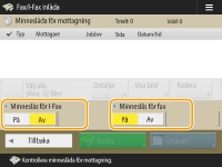 Välj <Minneslåda för mott.> och ställ in <Minneslås för fax> på <På>.