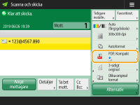 ![]() | Scannade original konverteras till elektroniska filer, som t.ex. PDF. Välj filformat efter dina behov och din användarmiljö. |