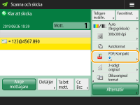 Ange mottagare på skärmbilden med grundläggande scanningsfunktioner.