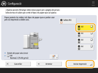 Gramatge del paper: Paper en el qual es pot realitzar una impressió a dues cares i és de 80 g/m2 o més pesat (es recomana paper de 200 g/m2 o més)