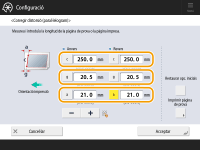 Introduïu la longitud mesurada de la vora de capçalera de la part dreta de l'àrea d'impressió a la vora de capçalera del paper d'impressió.