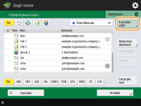 , es mostren les destinacions de correu electrònic, servidor de fitxers i de grup, respectivament.