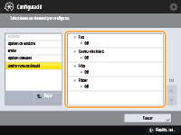 Establiu l'opció <Ajust auto. de velocitat de comunicació en usar VoIP> en <On> per enviar i rebre faxos amb més precisió quan la línia o l'altra part tenen tendència a fallar. La velocitat de comunicació queda limitada a un màxim de <14400 bps>, cosa que redueix els errors. Si l'opció <Ajust auto. de velocitat de comunicació en usar VoIP> està establerta en <Off>, es restableix el valor de la velocitat que es mostra a <Velocitat inicial de TX>.