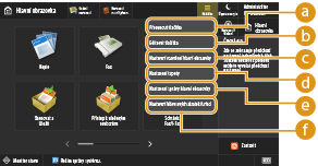<Omezit zobrazení funkcí>: Vyberte funkce a aplikace MEAP, které se mají skrýt na obrazovce <Hlavní obrazovka>.