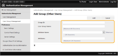 Klikněte na [User Management]  [Authentication Management]  [User Group Management].