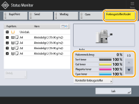 (Status Monitor), vises skærmbilledet Status Monitor, så du kan tjekke tonerniveauet eller andre statusindikationer.
