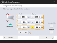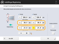Hvis billedplaceringen varierer meget, kan korrektionens nøjagtighed forbedres ved at printe flere testsider og anvende gennemsnittet af den målte længde.