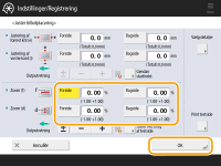 Hvis billedplaceringen varierer meget, kan korrektionens nøjagtighed forbedres ved at printe flere testsider og anvende gennemsnittet af den målte længde.