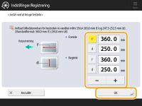 For det lange ark: Indtast den værdi, der beregnes fra den målte længde af mærket 'f' på testsiden for lange ark.