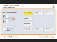 painike, johon kirjekuorityyppi on tallennettu <OK>. Monitoimitason usein käytetyn paperikoon ja -tyypin tallentaminen |