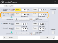 Kun avaat ikkunan uudelleen suljettuasi sen painamalla <OK>, ikkunassa olevat arvot palautuvat arvoon 0. Siitä huolimatta säädetty arvo on voimassa kussakin kentässä. Jos toistat vaiheen, tarkista 'i':n pituus uudella testisivulla ja syötä uusi arvo.