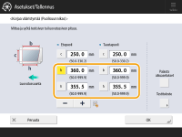 Syötä mitattu etäisyys tulostusalueen vasemman puolen etureunasta tulostusalueen oikean puolen etureunaan.