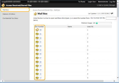 Valitse vastaanottajan postilaatikon numero [Target Box] -kohdassa ja valitse sitten [Start].