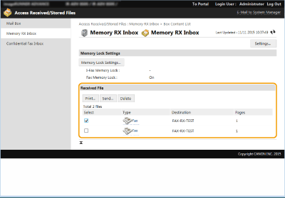 Muistin lukituksen asetusten koostaminenVoit määrittää, vastaanotetaanko fakseja ja I-fakseja muistivastaanottolokeroon, valitsemalla vaiheen 4 näytössä [Memory Lock Settings...].