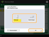 <Tallenna koko>, jotta voit hakea asetuksen nopeasti ja vaivattomasti.Jos skannauskoko on määritettyMääritettyä skannauskokoa (<Muokattu>, <Pitkä alkuperäinen> tai <Vapaa koko>) käyttäen skannattuja asiakirjoja ei voi tallentaa lokeroon.