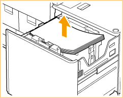 Plaats de papierstapel tegen de linkerzijkant van het papiermagazijn.