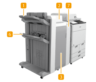 Als u de "Booklet Trimmer-F" in de "Booklet Finisher-W PRO" installeert, kunt u gebonden uitvoerpapier snijden om de rand van het papier uit te lijnen. Voor gedetailleerde informatie raadpleegt u de Booklet Trimmer-F-gebruikershandleiding.