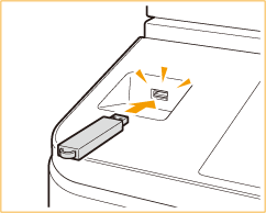U kunt een USB-geheugenapparaat aansluiten op de USB-poort aan de linkerzijde van het bedieningspaneel, en rechtstreeks vanaf het USB-geheugenapparaat gegevens afdrukken. Originelen die met het apparaat zijn gescand, kunnen ook rechtstreeks worden opgeslagen op het USB-geheugenapparaat.