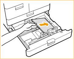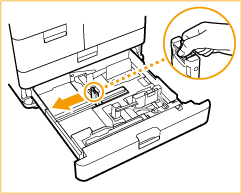 Druk op het bovenste gedeelte van de voorkantgeleider en verschuif hem totdat hij op een lijn staat met het tabbladpapier.