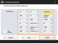 U kunt het papierformaat opgeven als <Vrij formaat>, zodat u de instelling voor het papierformaat niet meer hoeft in te voeren. Geef <Vrij formaat> op wanneer u papier van een onbekend formaat plaatst voor gebruik bij kopiëren of wanneer het papierformaat al geregistreerd is in het printerstuurprogramma.