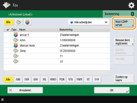 De naam van een afzender selecterenAls u op het scherm met basisfuncties voor faxen op <Opties>