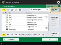 Het totale aantal opgegeven bestemmingen controlerenHet totale aantal opgegeven bestemmingen wordt weergegeven in de rechterbovenhoek van het scherm. Hierdoor kunt u bevestigen dat het aantal bestemmingen correct is voordat u gaat verzenden.