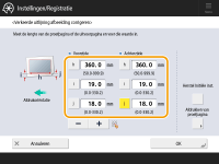 Voer de gemeten lengte in van de linkerzijde van de achterrand van het afdrukgebied naar de linkerzijde van het papier.